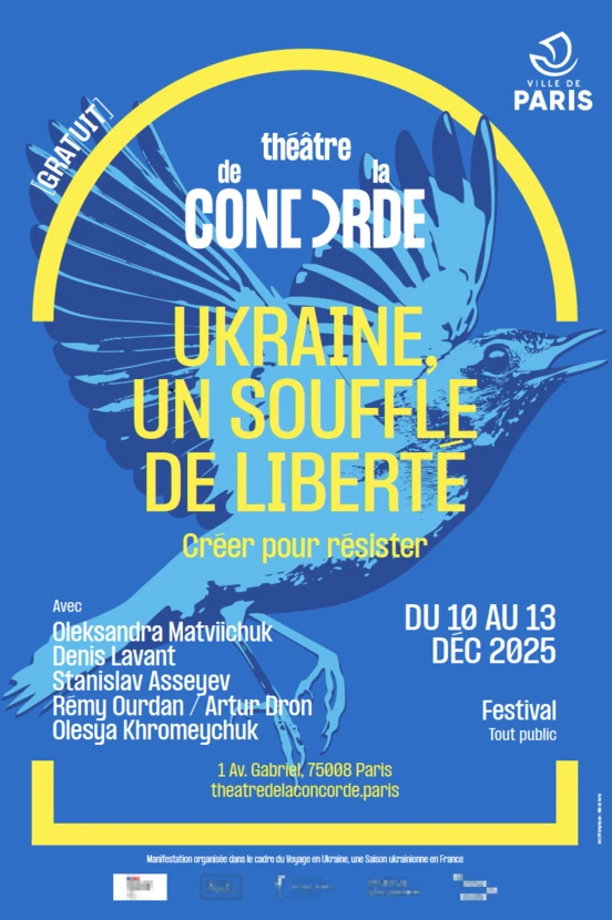 Du 10 au 13 décembre, à Paris, le Théâtre de la Concorde accueille des voix ukrainiennes illustrant le combat du pays pour sa liberté et sa dignité durant 4 soirées thématiques.